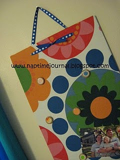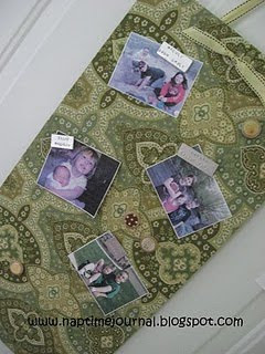 She bought the sheet of magnet at Lowe's for $6, covered it with material, and even made her own magnets! So cute!!