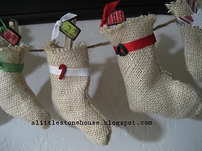 A Little Stone House made these cute advent socks out of burlap. Have I ever mentioned how much I LOVE burlap?! :)